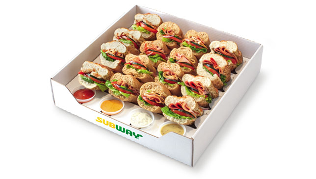 Una comida de negocios, una velada, un cumpleaños. Escoja su SUB preferido presentado en porciones de 10 cm en una espléndida bandeja pensada para todas las ocasiones, compuesta por 16 bocadillos para un grupo de 5 a 8 personas dependiendo del apetito.